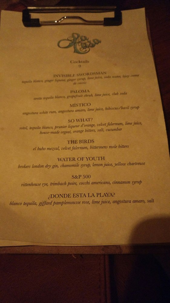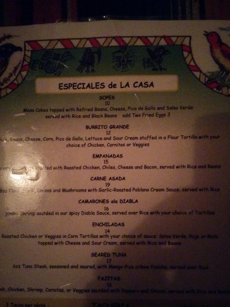 La Casa Restaurant Menu