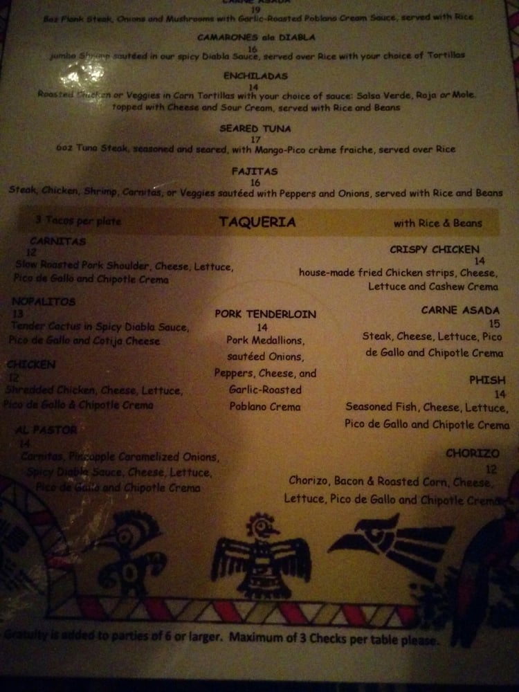 Shrimp, spicy diabla sauce, and rice served with your choice of corn or flour tortillas.